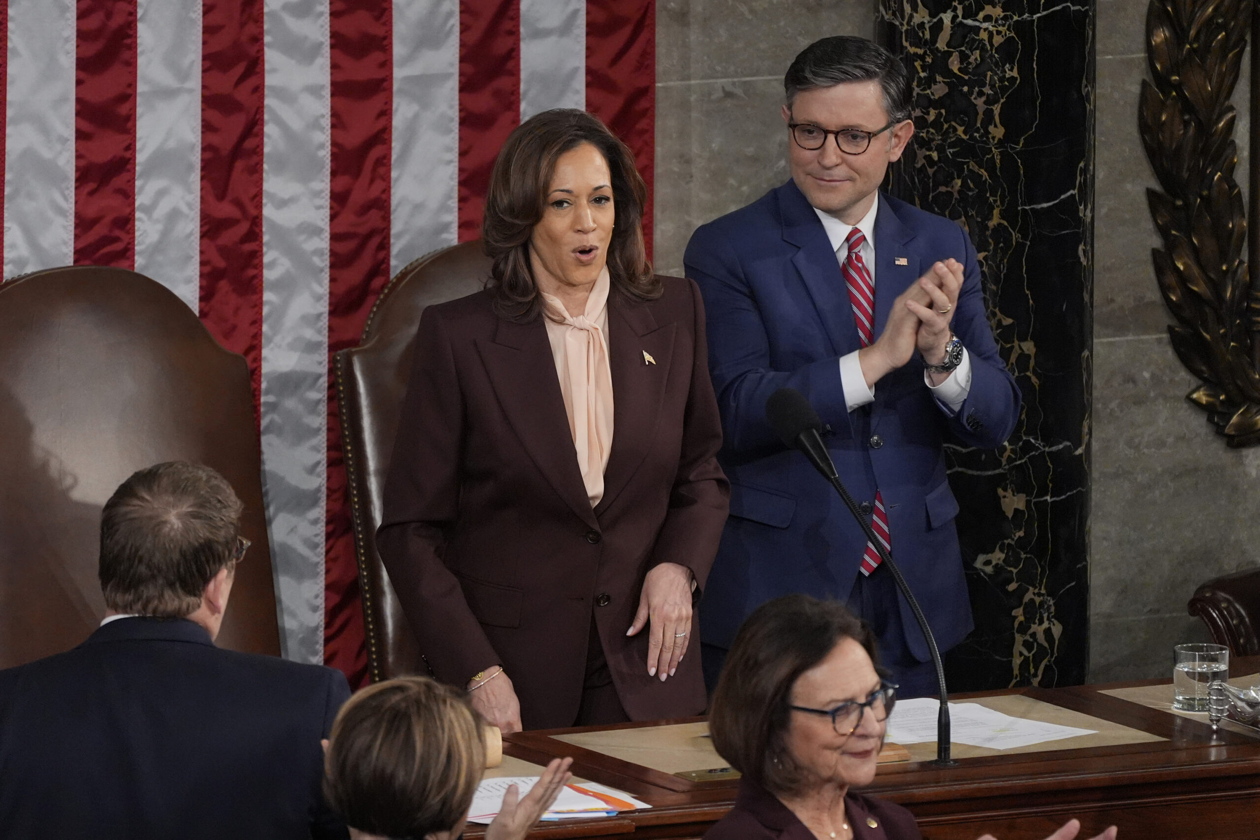 When Harris read the tally, the chamber broke into applause: first Republicans for Trump’s 312 electoral votes, then Democrats for Harris’ 226.