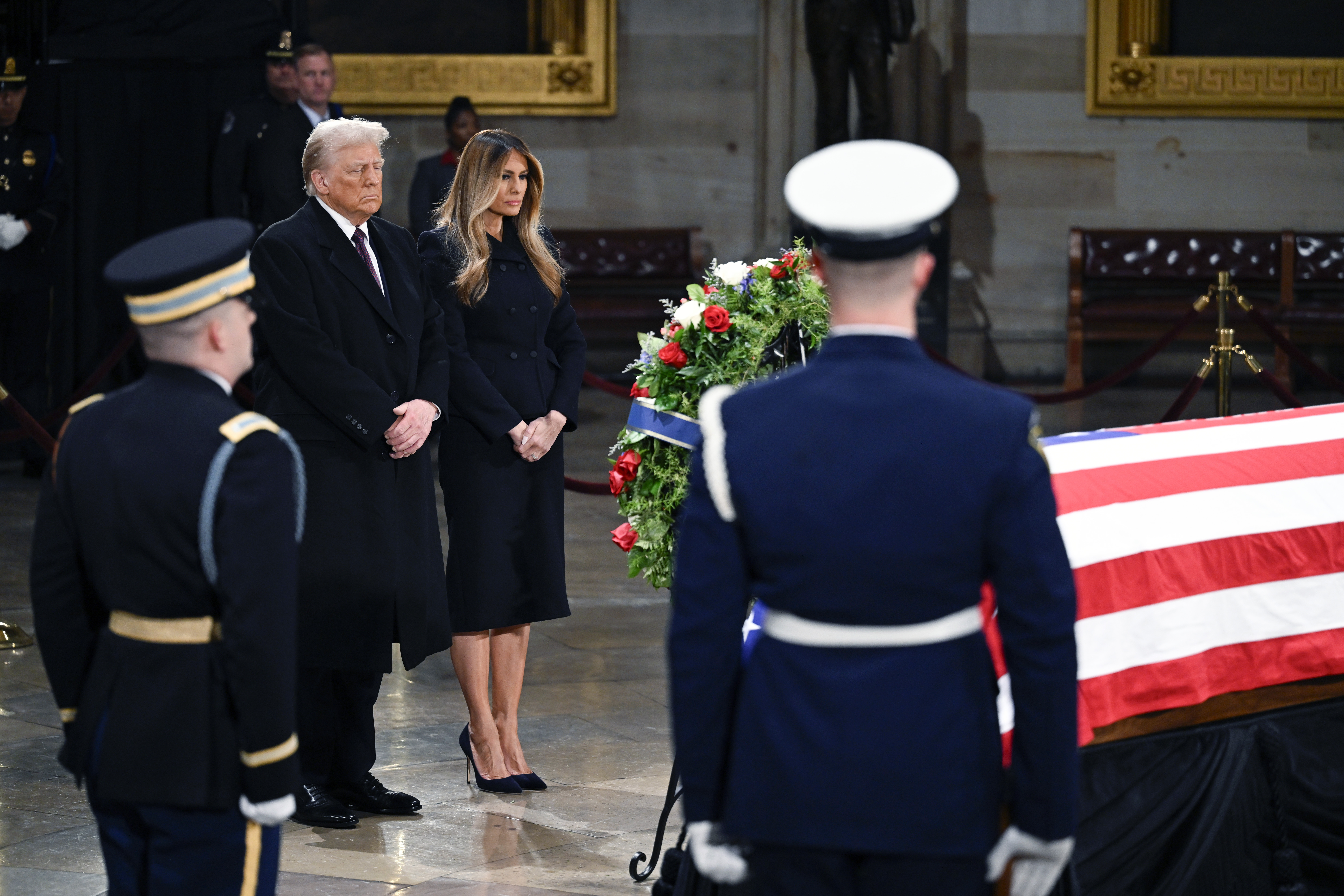 Trump, who plans to attend Carter’s funeral Thursday at Washington National Cathedral, played it straight on Capitol Hill, walking somberly into the rotunda with his wife, Melania, and pausing in front of Carter’s flag-draped casket, which is resting atop the Lincoln catafalque and stands surrounded by a military honor guard.
