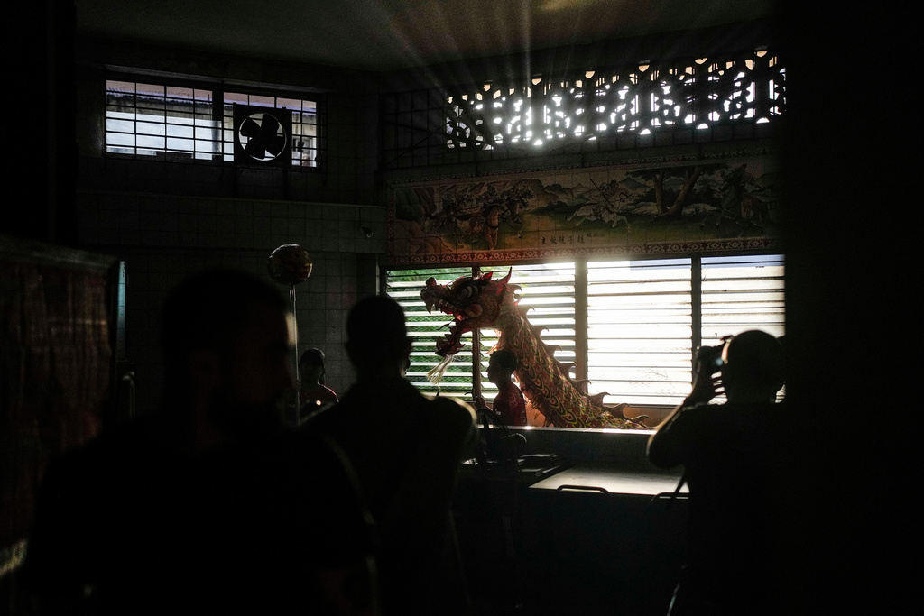 People perform a dragon dance inside the Yan Wo temple to celebrate the Lunar New Year in Panama City, Tuesday, Feb. 17, 2026. (AP Photo/Matias Delacroix)