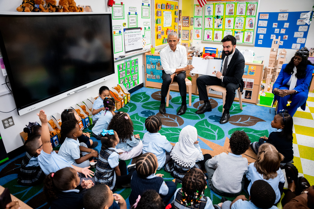 Photos show Obama and Mamdani reading to preschoolers in the Bronx